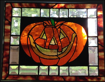 | This is such a cute US flag pattern for stained glass that JoElla Rea did very nicely. Find the pattern HERE. She also did a very nice pumpkin for the fall season. Find that pattern HERE. Love the bevels. | ||
