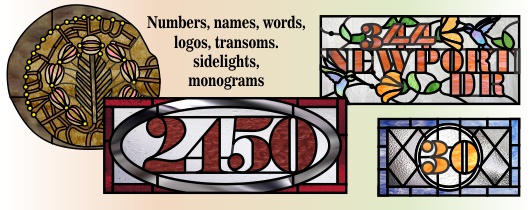 House numbers, names, letters, monograms, initials, business logos, landscapes from your photographs, or your childs artwork, custom patterns for needlework, or stained glass, glass painting or stained glass memorials.
